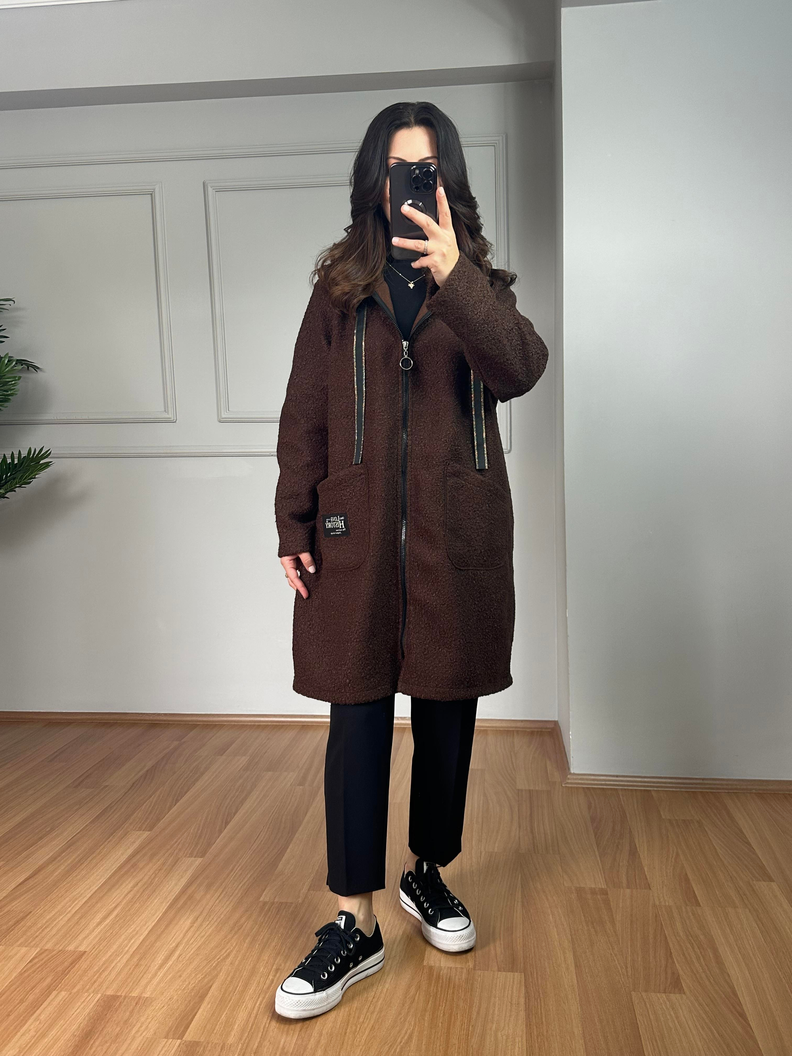 CDBR4063Buse Acı Kahve İtalyan Buklet Oversize Ceket