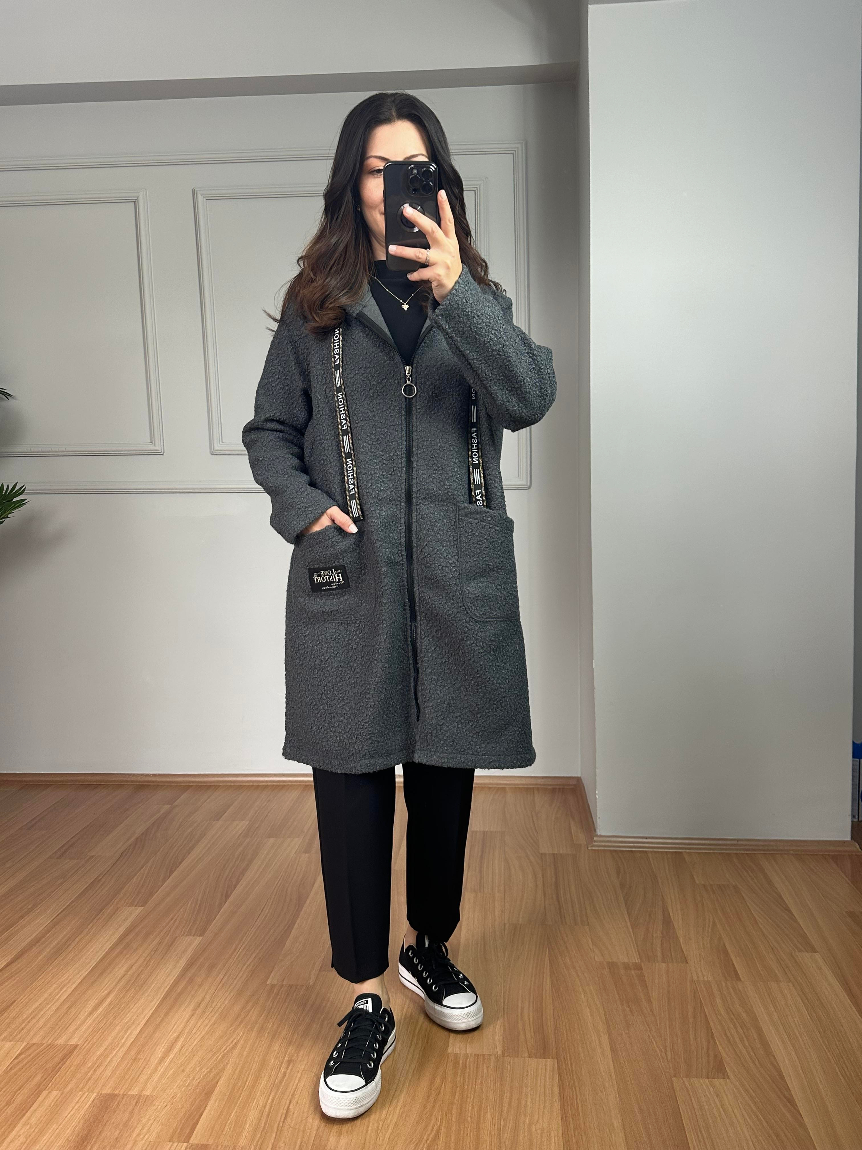 Buse Antrasit İtalyan Buklet Oversize Ceket