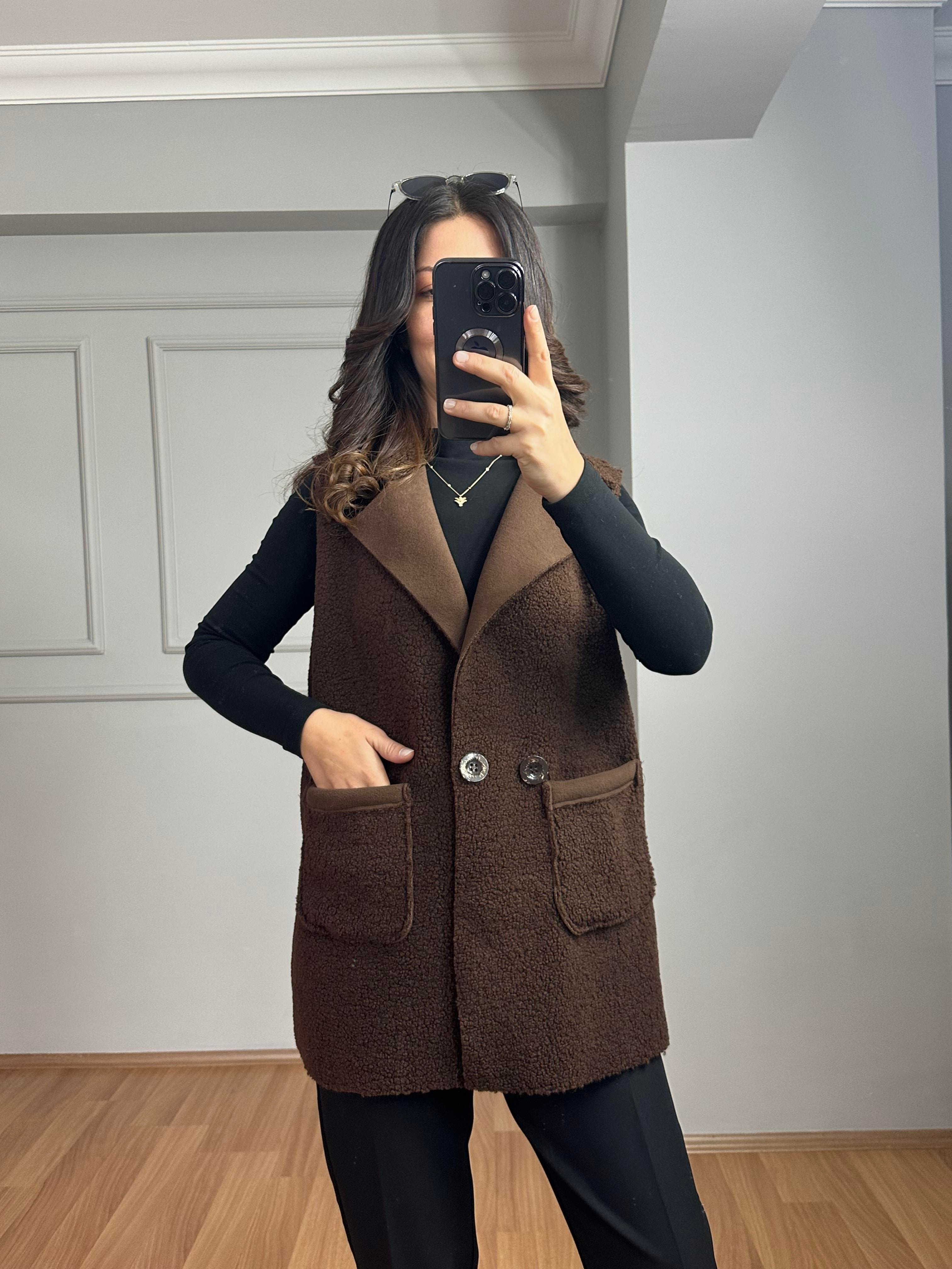 İçi Şardonlu İthal Kumaş Kuzu Yelek.
