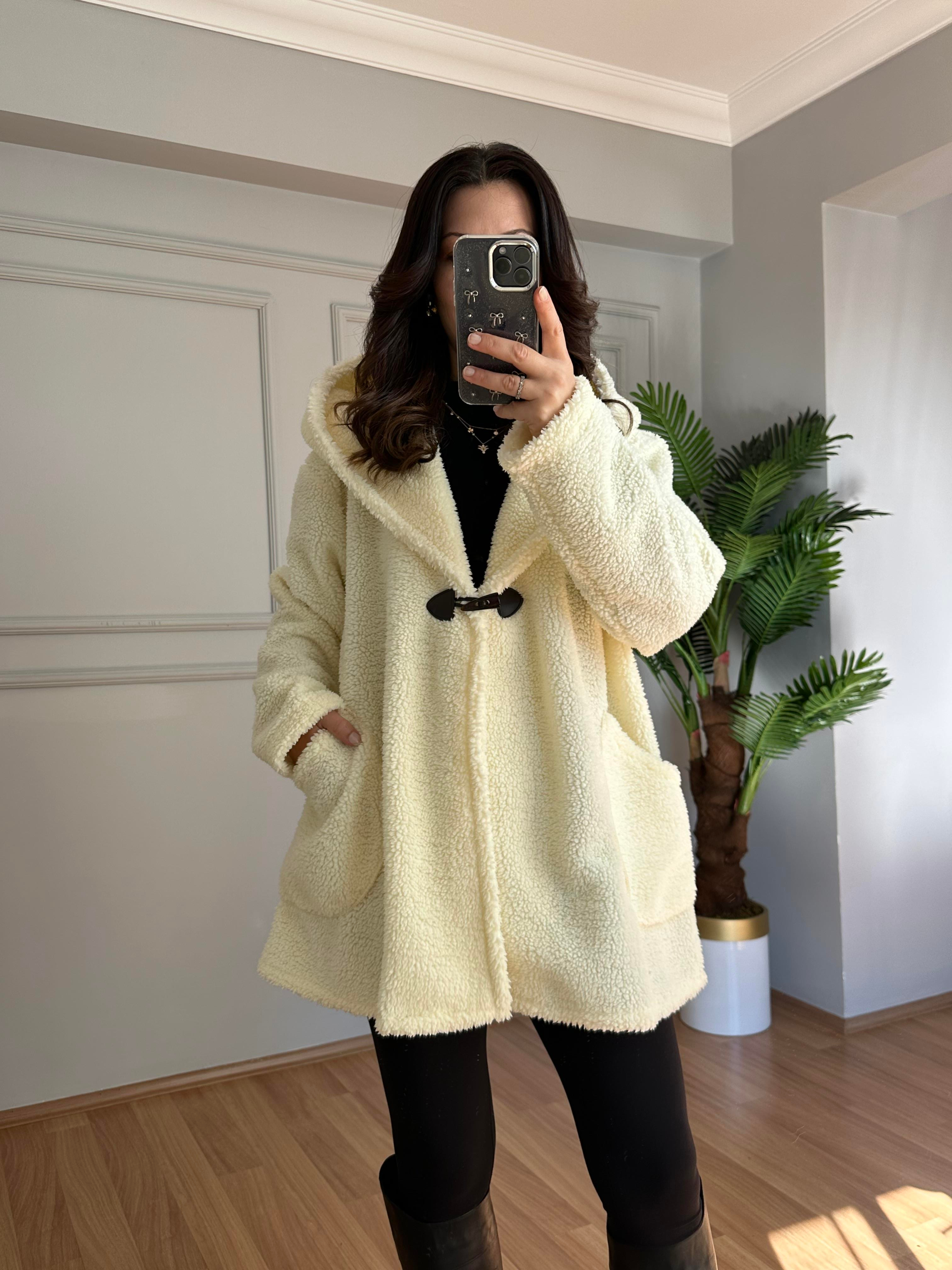 CDBR4093İrana Krem Tedy Tek Düğmeli Ceket