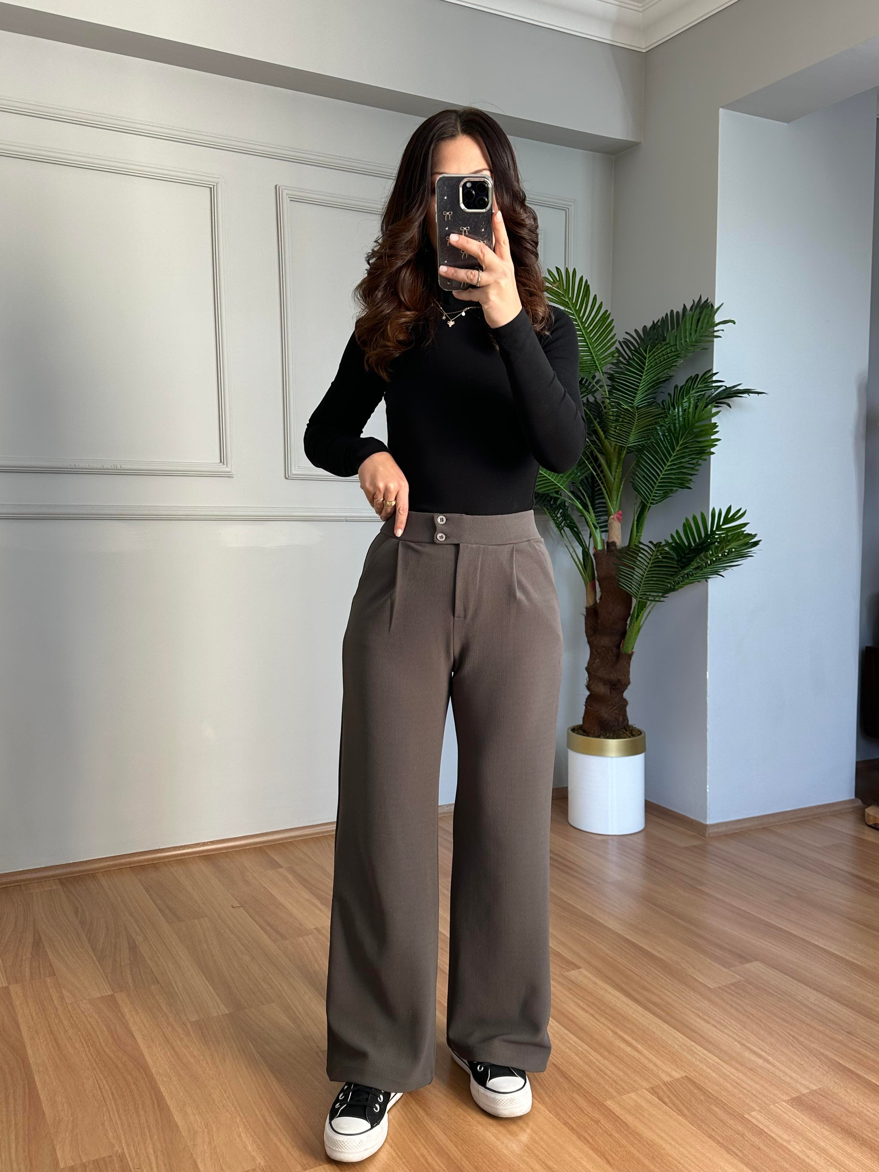 CDBR4099Kendy Antrasit Likralı Bel Çift Düğmeli Palazzo Pantolon