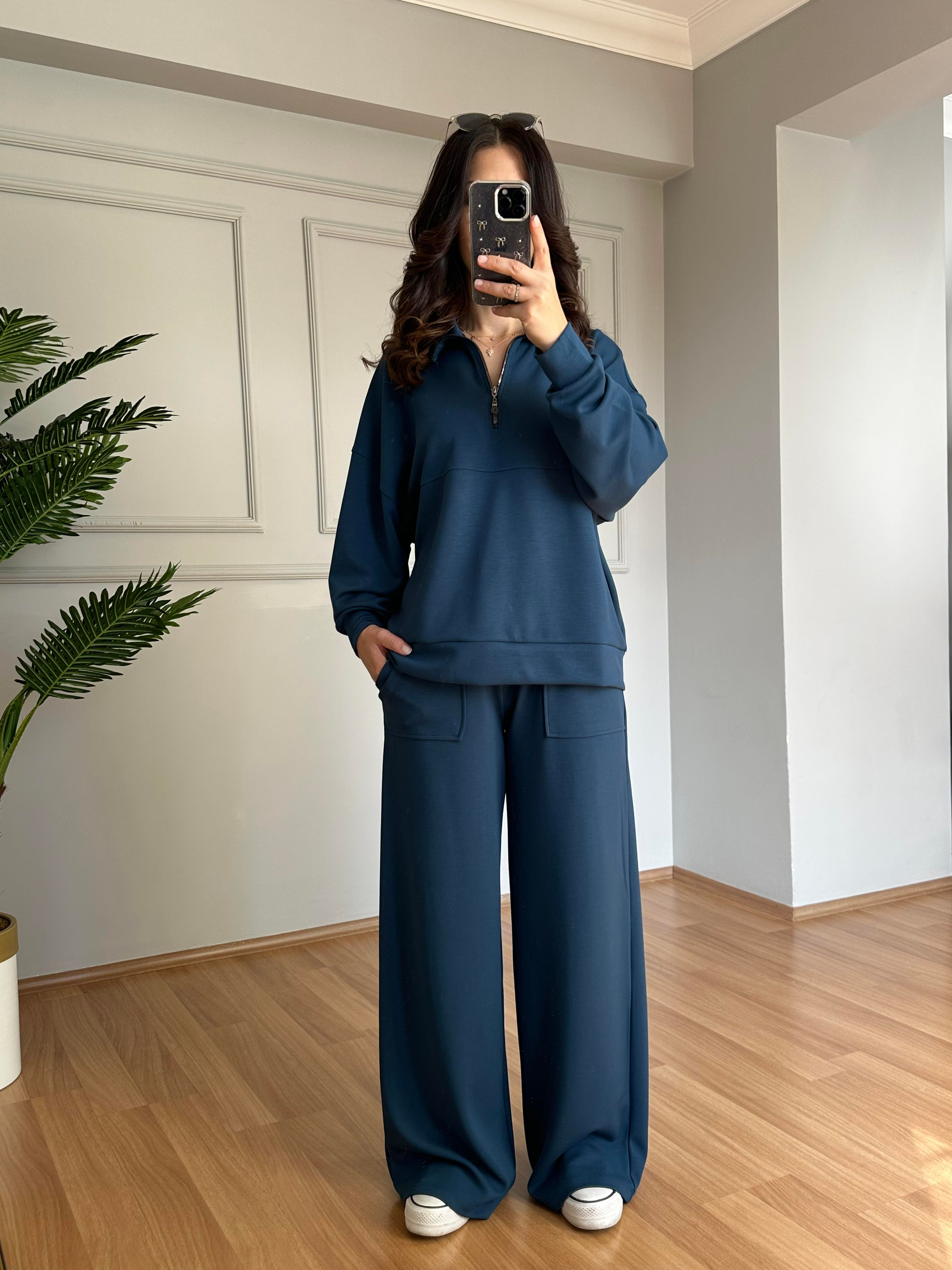 Lora İndigo Modal Kumaş Fermuarlı Eşofman takımı