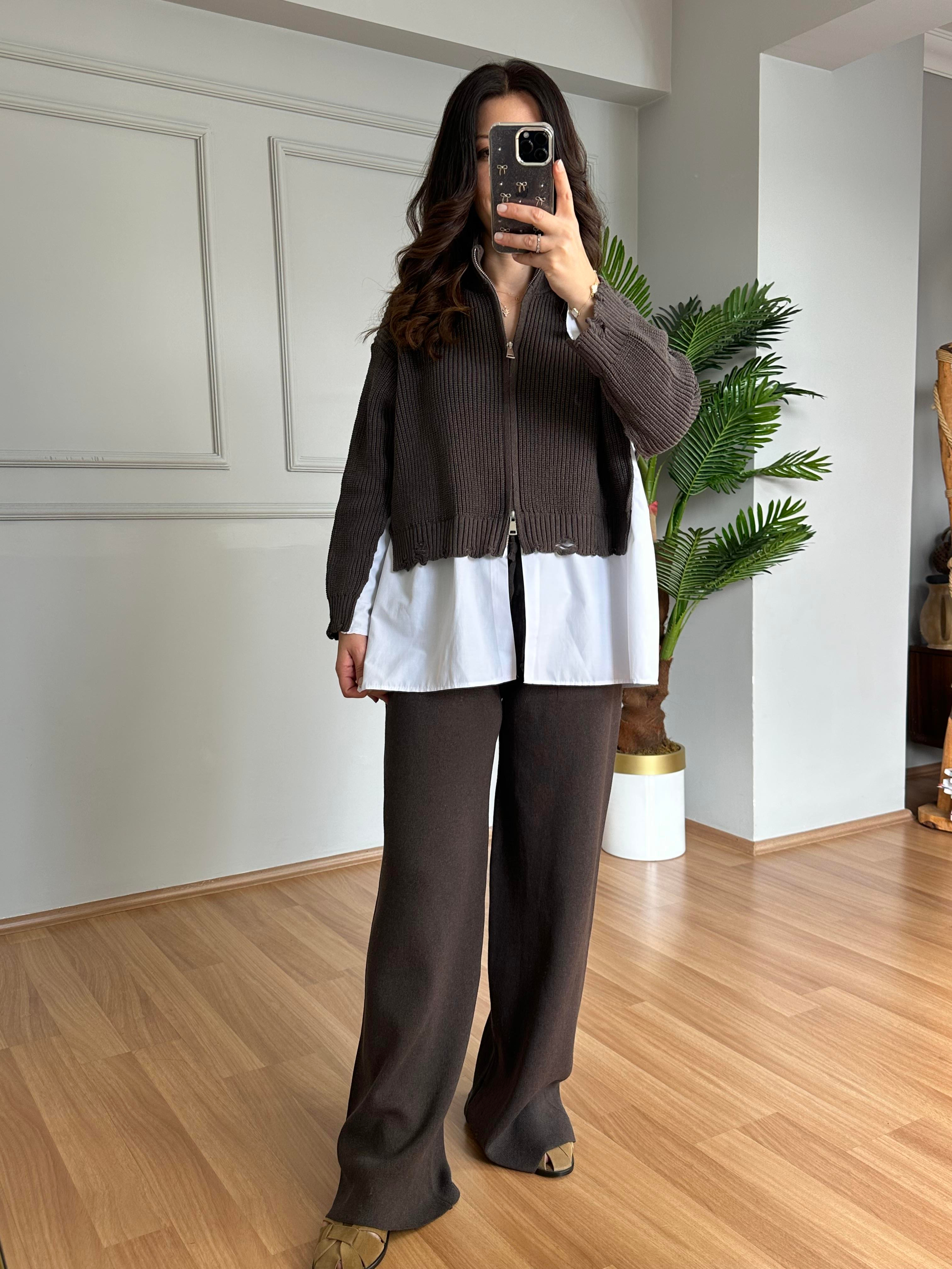 CDBR4120Minel Kahve Premium Kalite Tasarım Triko Takım