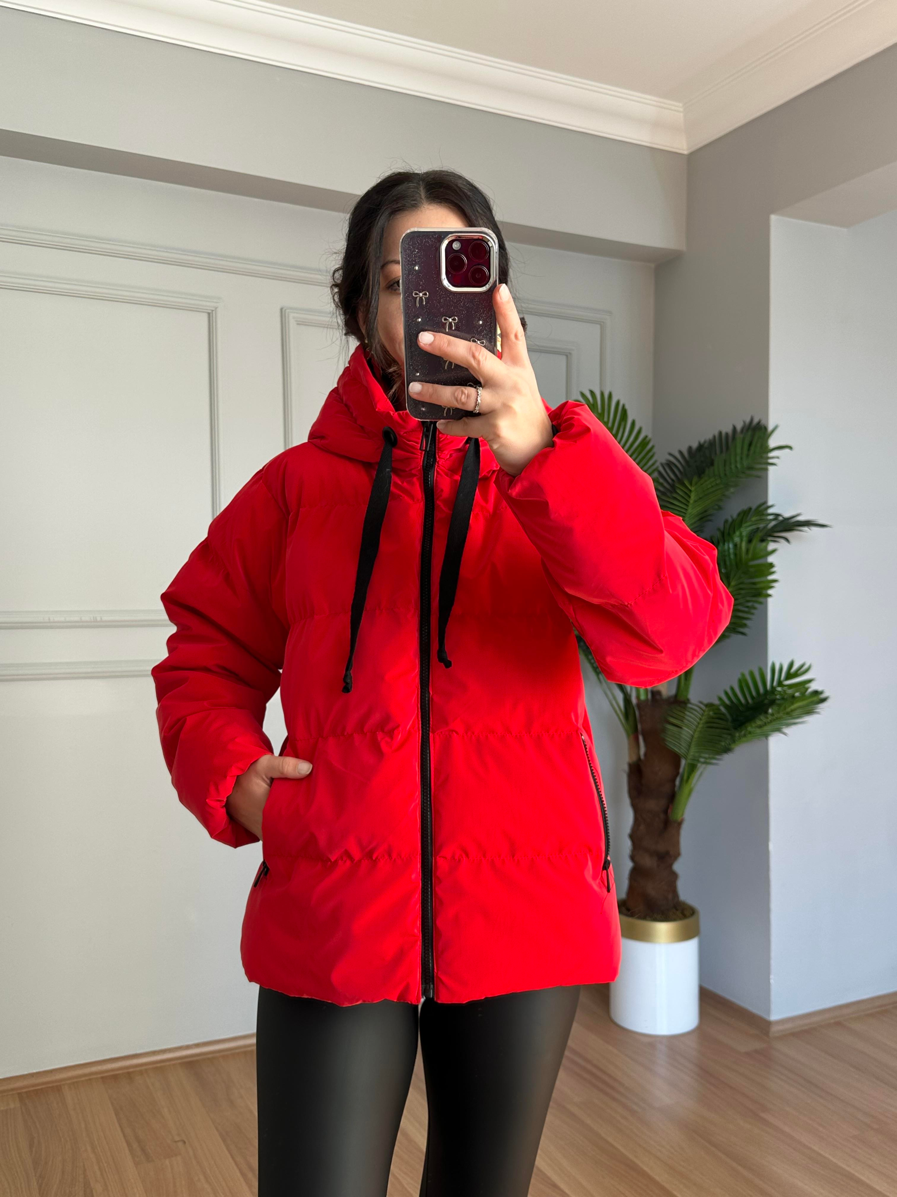 CDBR4108Pari Kırmızı Hafif Parlak Şişme Mont