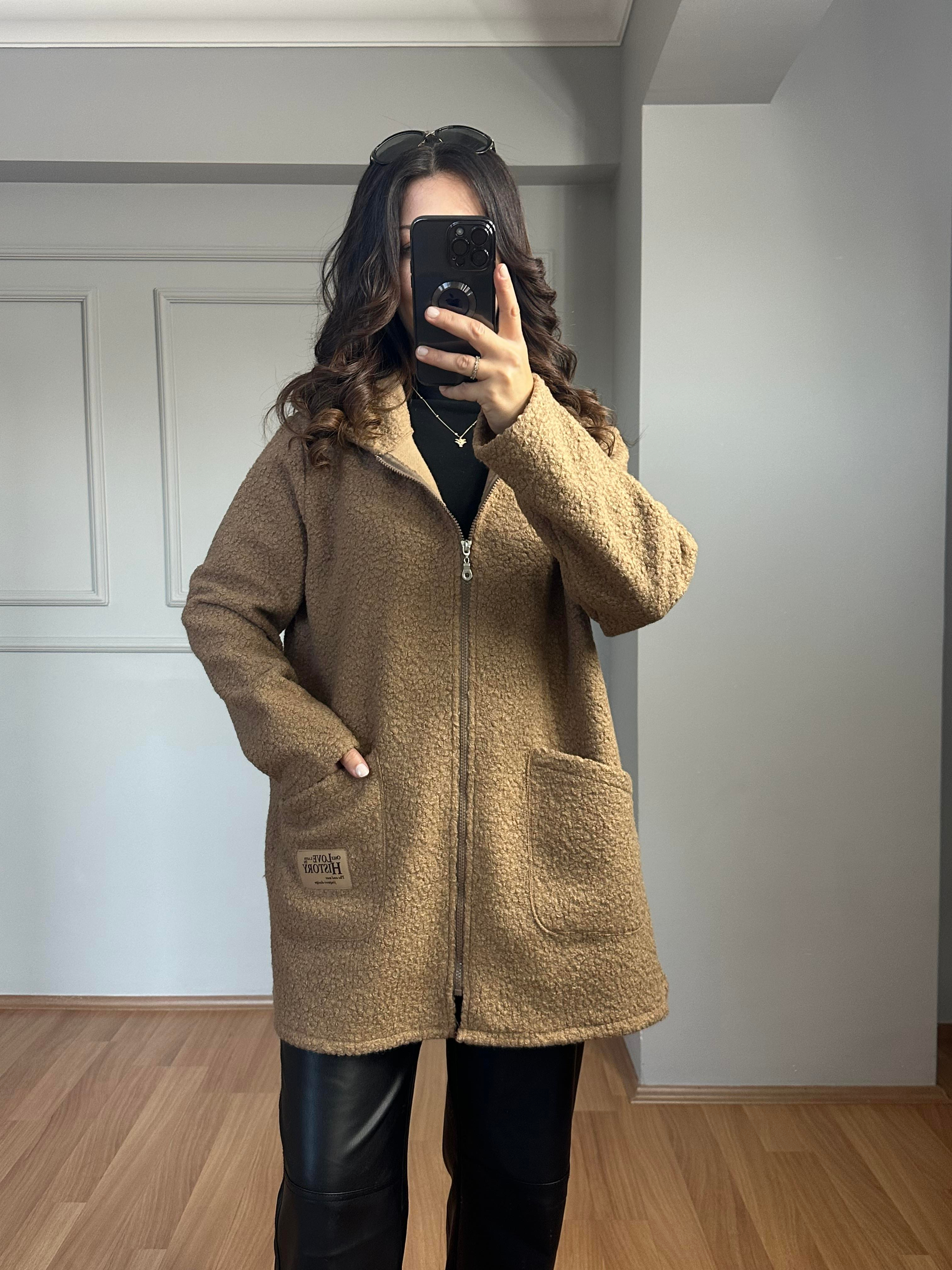Ukte Camel İthal Buklet Kumaş Oversize Ceket