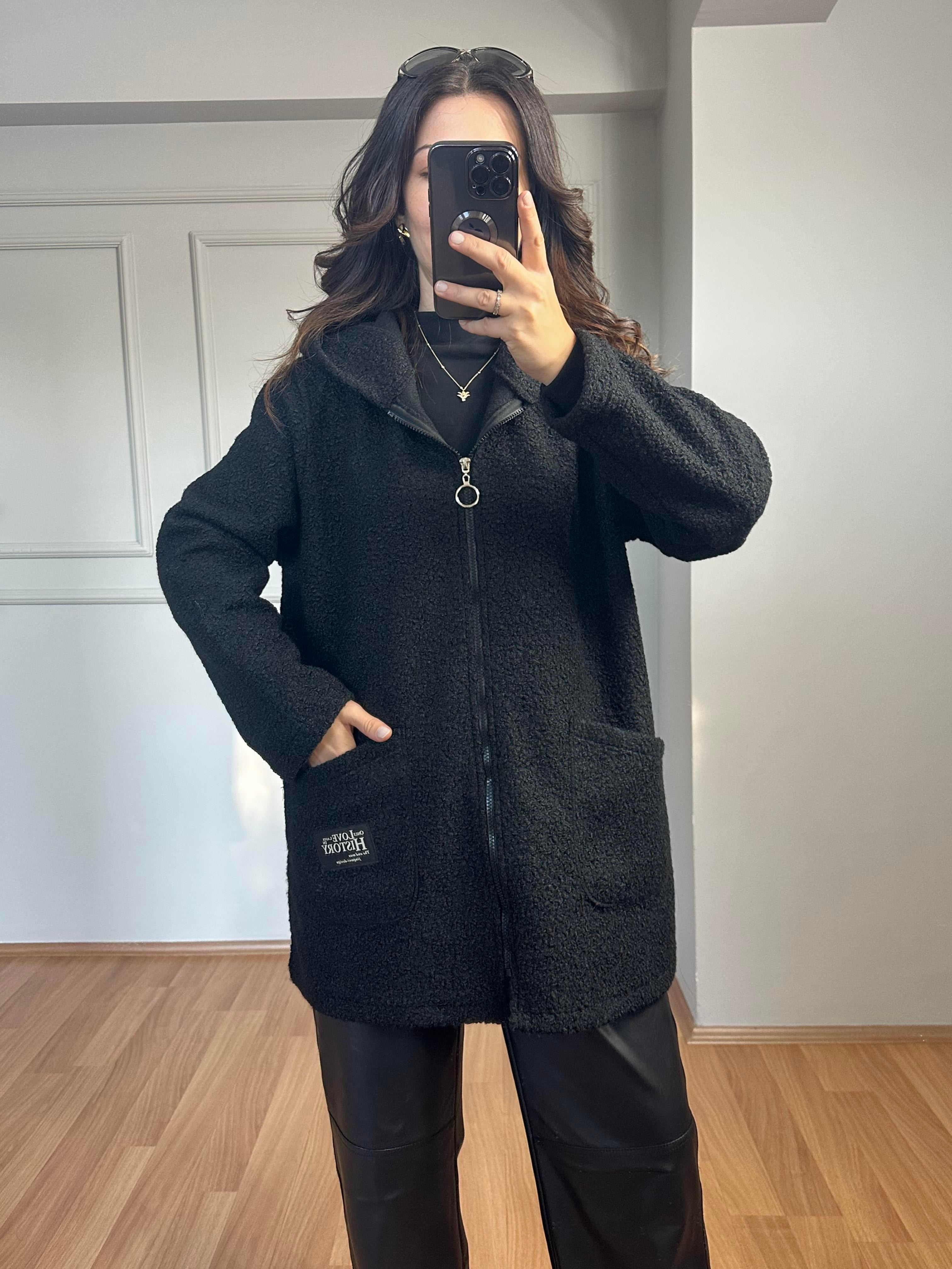 Ukte Siyah İthal Buklet Kumaş Oversize Ceket
