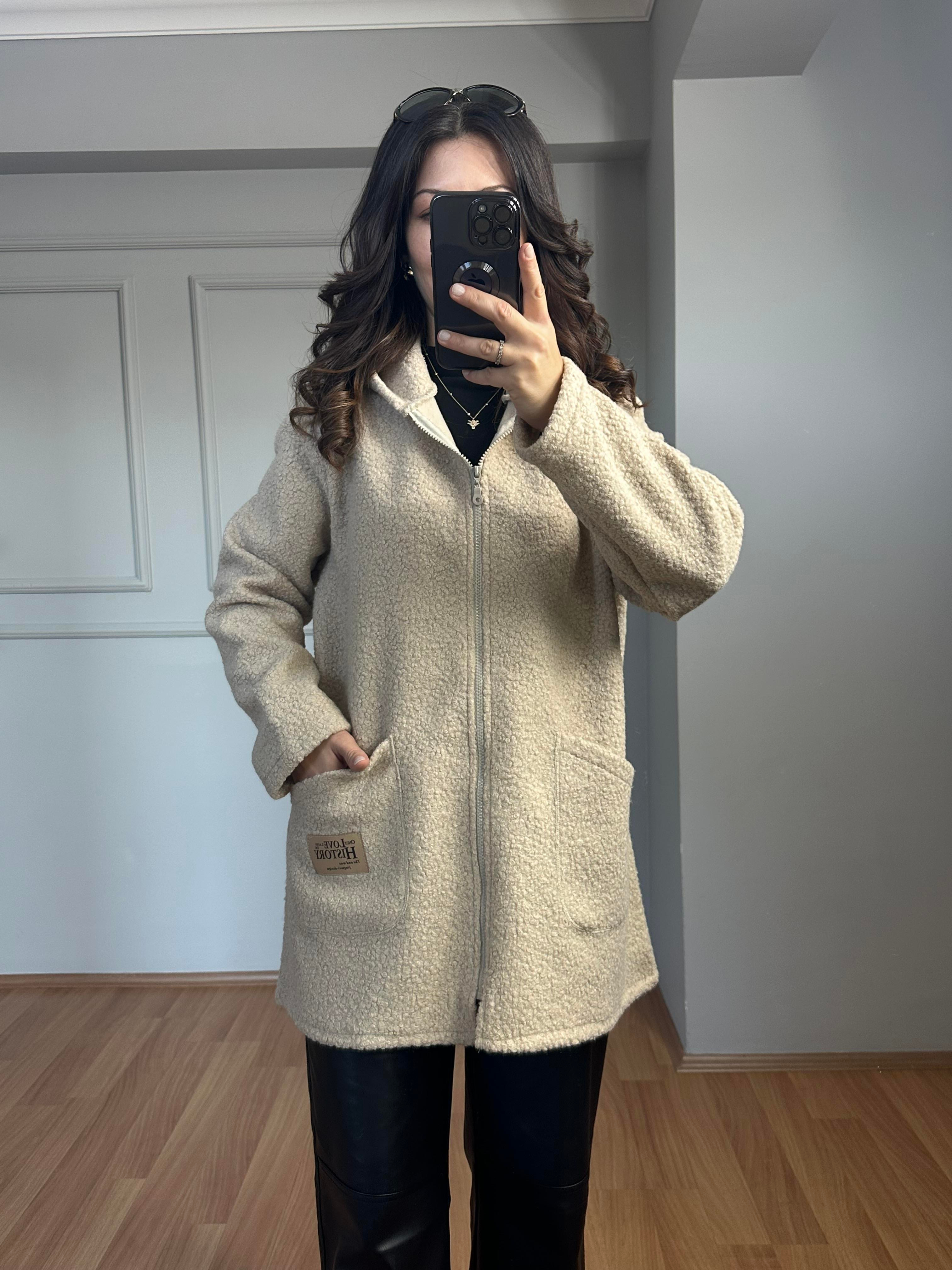 Ukte Taş İthal Buklet Kumaş Oversize Ceket