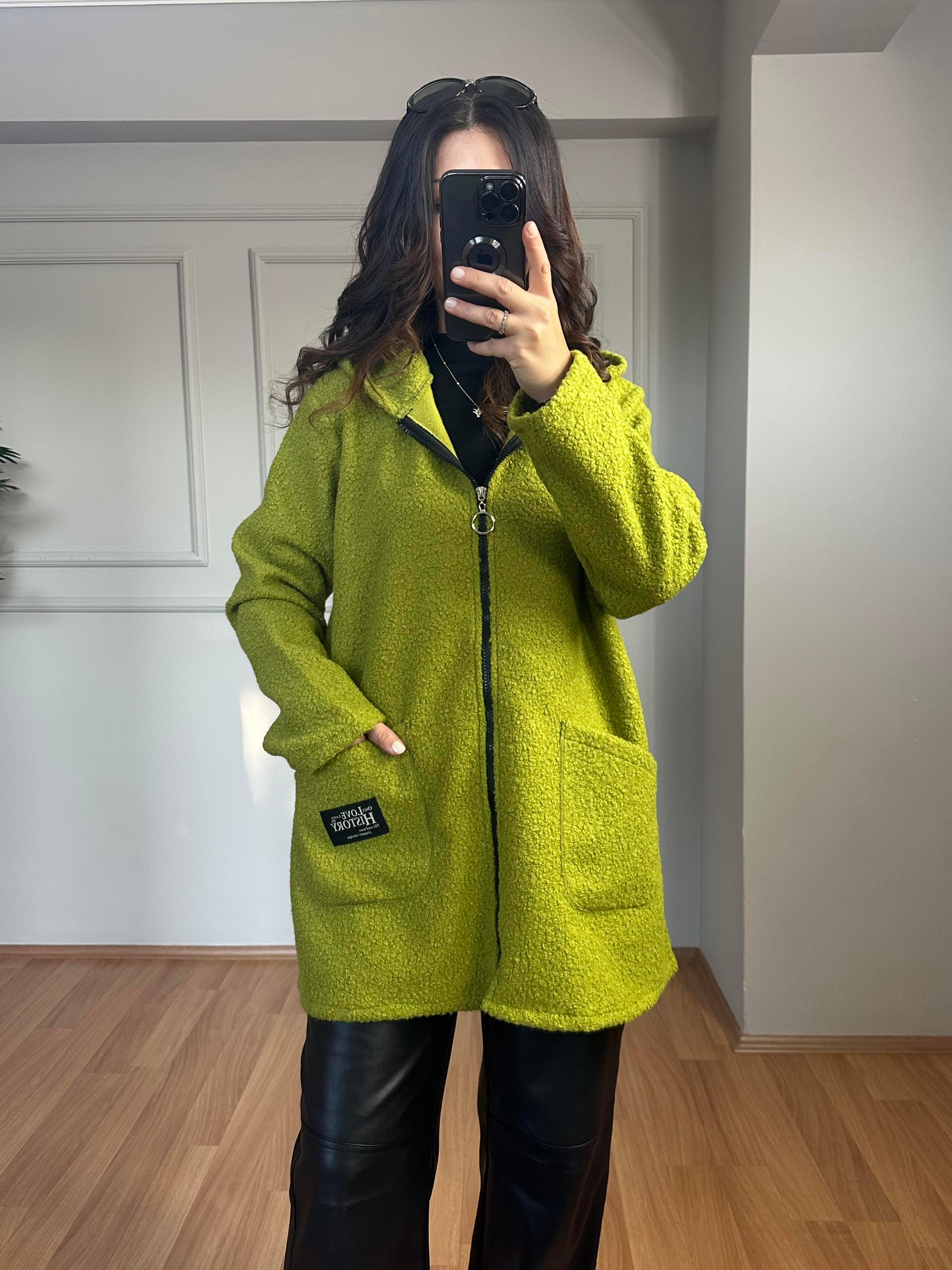 Ukte Yeşil İthal Buklet Kumaş Oversize Ceket
